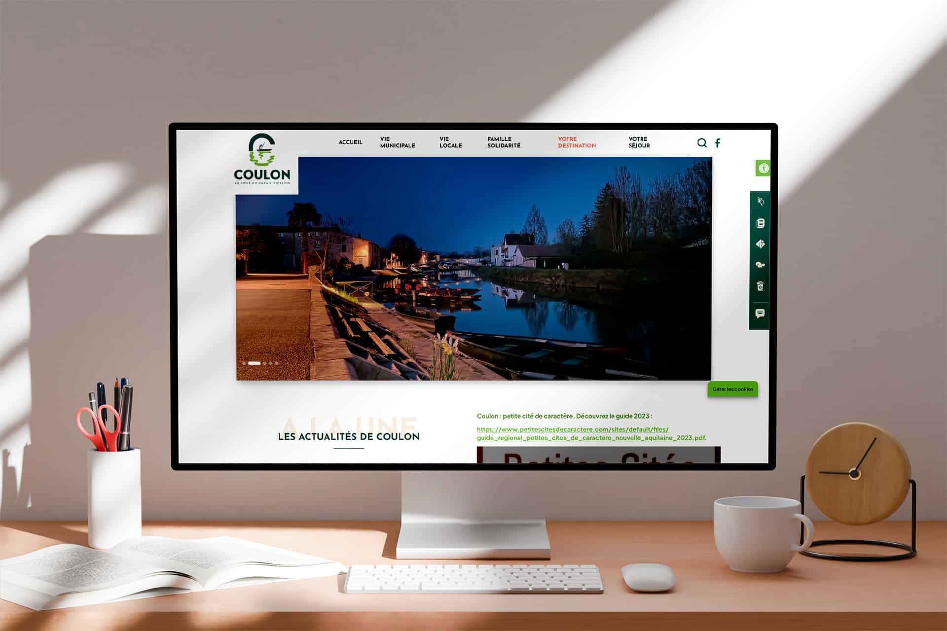 Coulon, reconnue comme la capitale de la Venise Verte, située au cœur du Marais Poitevin, est une commune des Deux-Sèvres (79). Elle a confié à l’équipe MonClocher la mission de refondre son site internet.